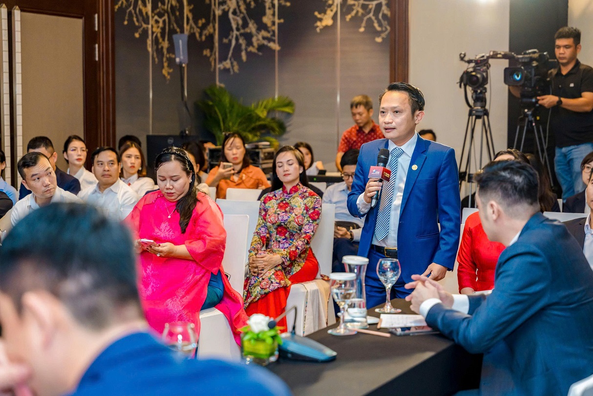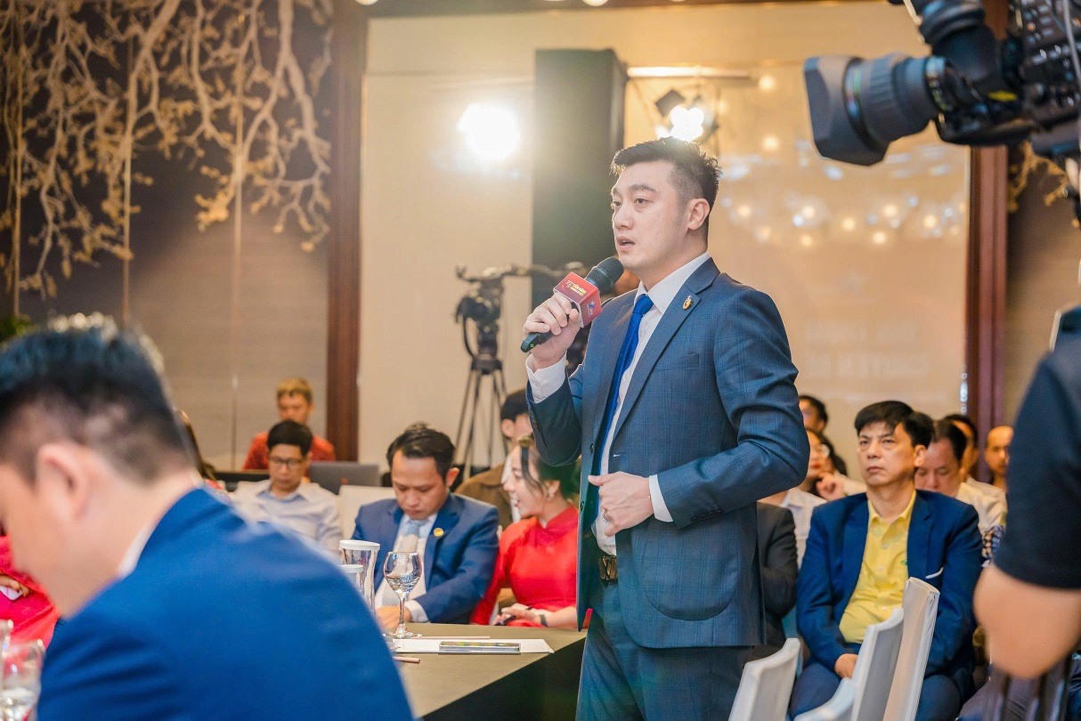 CEO Lưu Thị Thanh Mẫu – Phó Chủ tịch Hội Doanh nhân trẻ Việt Nam, Tổng Giám đốc Phuc Khang Corporation phát biểu tại Phiên đối thoại chuyên đề Pháp lý